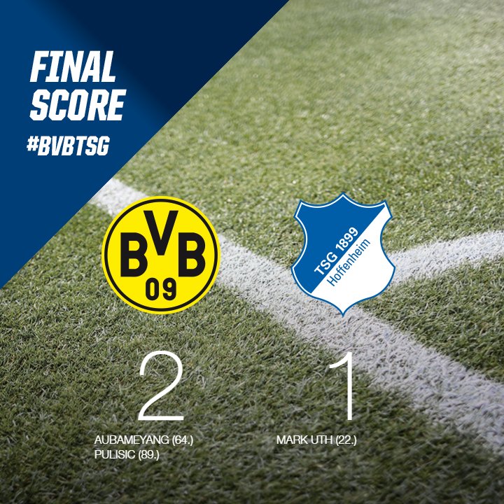 דקה 90'-שער כריסטין פוליסיץ מוצא את עצמו במצב של אחד על אחד, מקפיץ מעל השוער ומגלגל את הכדור לרשת ריקה! שער מצוין של האמריקאי הצעיר משלים את המהפך לטובת הביתיים. 2-1 דורטמונד!