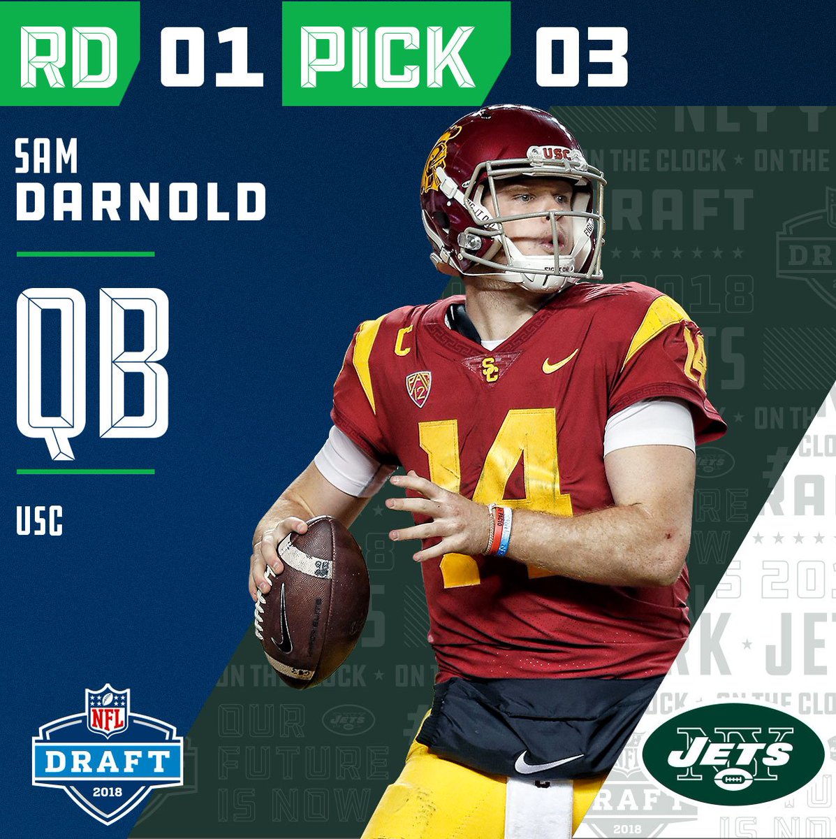 3. הניו יורק ג'טס בוחרים את: סאם דרנולד, קוורטרבק, USC.